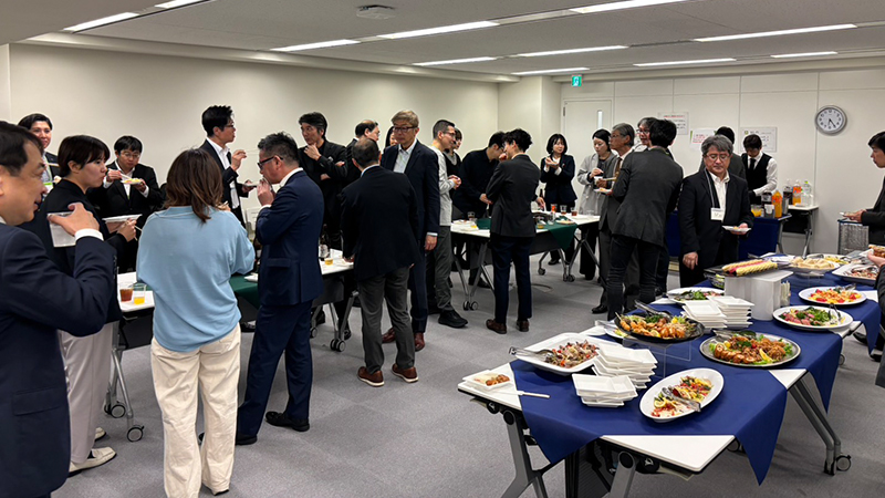 当日は50名近くの方にご参加いただき、講演後の懇親会(名刺交換会)も盛況のうちに終了しました。懇親会では、新たに入会された2社の会員企業様からご挨拶をいただくなど、参加者同士の交流の場となりました。
